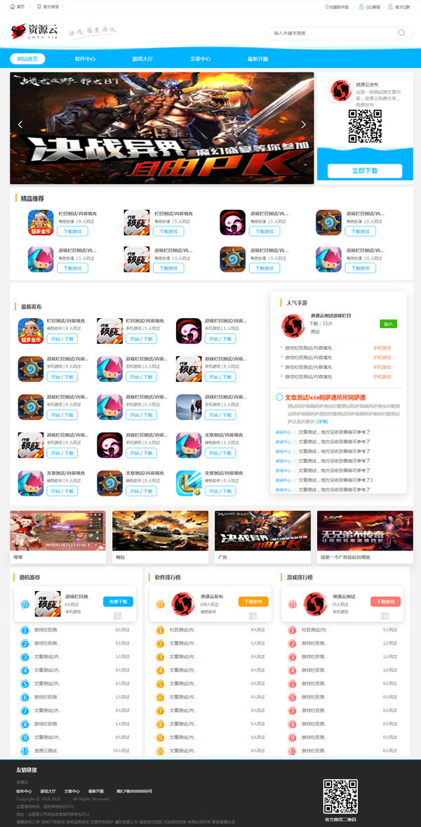 一款pbootCMS内核的下载站模板,包含APP、游戏、软件类目,PbootCMS是免费可商用的建站系统。