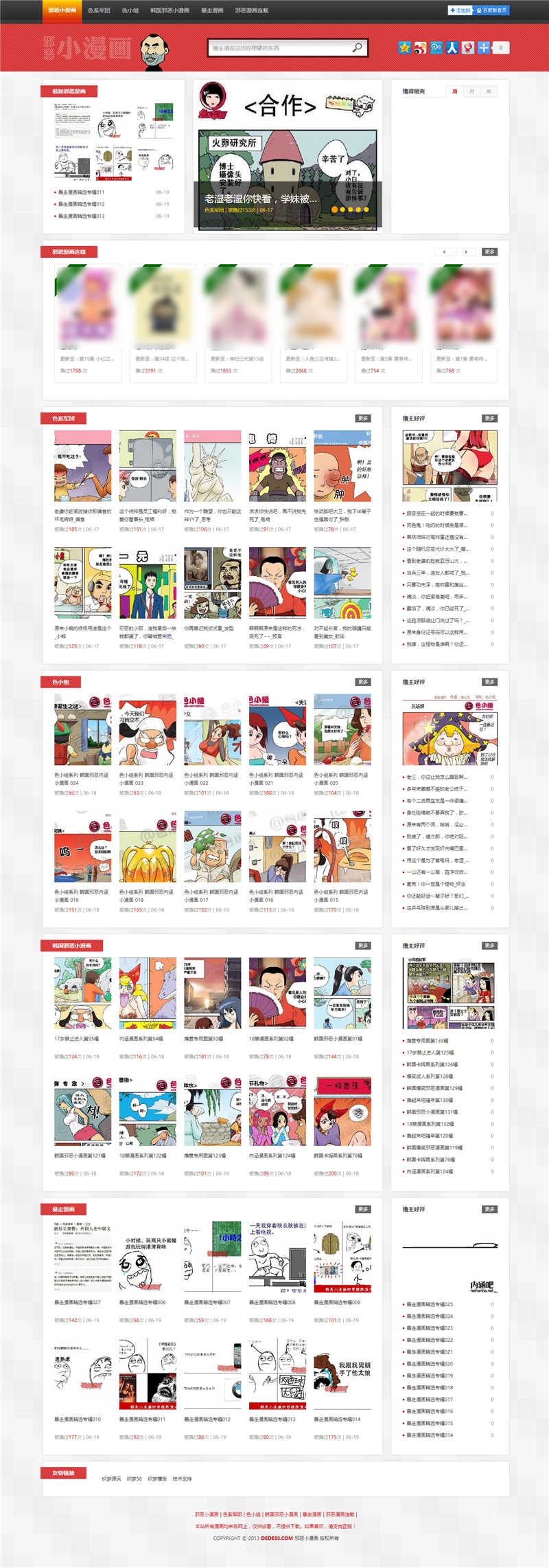 织梦CMS仿邪恶小漫画网站模板,一款高仿z87内涵吧_搞笑内涵图_内涵漫画_色系军团邪恶漫画的网站模板。