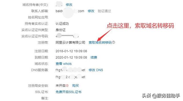 (这个转移码非常重要,所以千万不要泄露了,否则域名很可能成为别人的了)